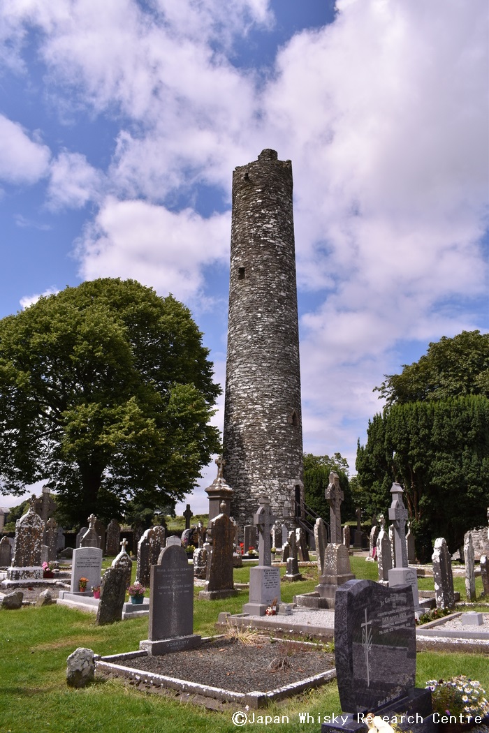 蒸留所見学にアイルランドを訪れたら、ぜひケルト十字やラウンドタワーも見に行ってほしい。ダブリンから車で1時間ほど北上したところにあるのがモナスターボイスの修道院跡で、修道院の建物はほとんど残っていないが、見事なケルト十字と、11世紀頃に建てられたというラウンドタワーが残っている。塔頂部は雷に打たれて崩れ落ち、現在は欠けたままになっているが、これはもともとヴァイキングの侵攻に備えたもので、高いものは30メートル以上もあり、当時の建築技術の高さを物語るものとなっている。
