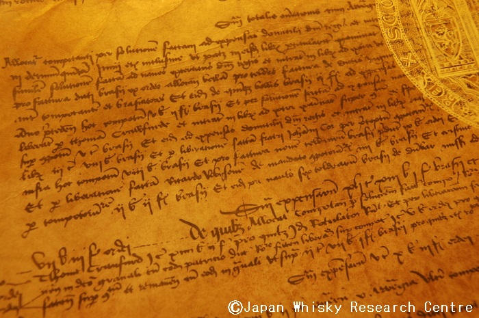 「王命により修道士ジョン・コーに8ボルの麦芽を与え、アクアヴィテを造らしむ」。ウイスキーの愛好家で、この文章を知らない者はいないと思うが、これがウイスキーについて言及した人類最古の記録である。書かれたのは1494年で、これをもってスコッチは、スコッチ元年としているが、ここに登場する王こそが、1488年に即位したジェームズ4世のことである。