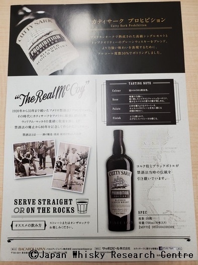 ちなみに禁酒法解除80年を記念してカティサークが2013年にリリースしたのが、その名もプロヒビション(Prohibition)、禁酒法というボトルで、そこにはリアルマッコイのストーリーも載せられていた。