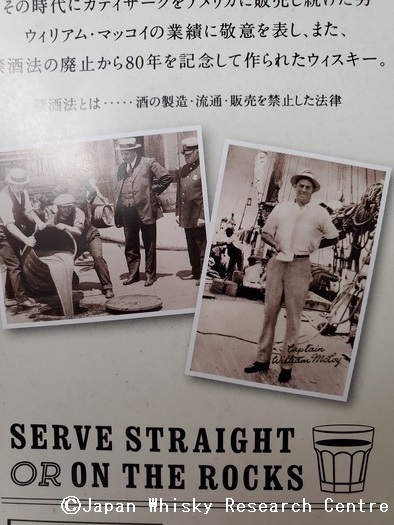ちなみに禁酒法解除80年を記念してカティサークが2013年にリリースしたのが、その名もプロヒビション(Prohibition)、禁酒法というボトルで、そこにはリアルマッコイのストーリーも載せられていた。