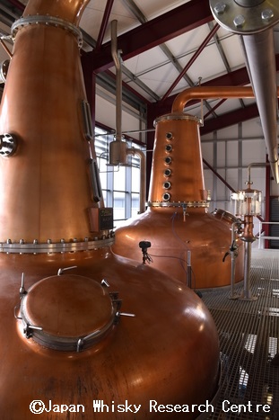 さらにポットスチルも、イタリアのフリッリ社製の特殊なスチルで、1基のハイブリッドスチルは“ローモンドスチル”と名付けられているが、本来のローモンドスチルではなく、インチデアニーの創業者、イアン・パーマー氏が開発した、インチデアニー独自のもの。ヘッド内部に数段のシーブトレイが入っていて、これ1基で90度近くまで、アルコール度数を上げることができるという。