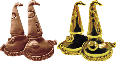 タウザーのピンバッジを紹介したついでに、私のお気に入りのポットスチルのピンバッジについても。そういえばウイ文研でもコニサー資格認定でスチルのピンバッジを作っているが、それはそれで、この手のものの中では傑作だと思っている。エキスパートの銅のバッジが特にそうで、2基のスチルにこだわったのは、スコッチもジャパニーズも、基本2回蒸留だからだ。見れば分かるが、手前(右)が初留釜で、奥(左)が再留釜である。どこで見分けるかって。それはエキスパートなら当然わかると思うが、初留釜にはサイトグラスが付いているからだ(我ながら芸が細かい)。