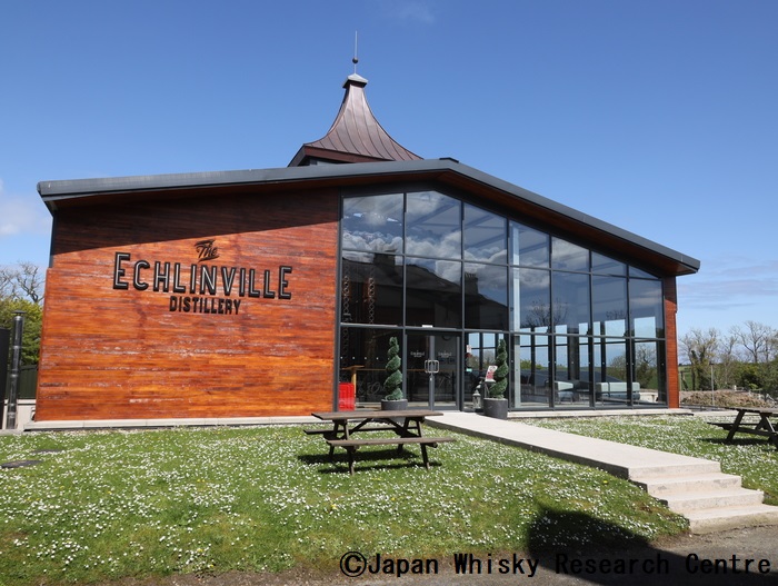 ダウン州のストラングフォード湖の畔にあるエクリンヴィル蒸留所。ガラス越しにスチルが垣間見える。
