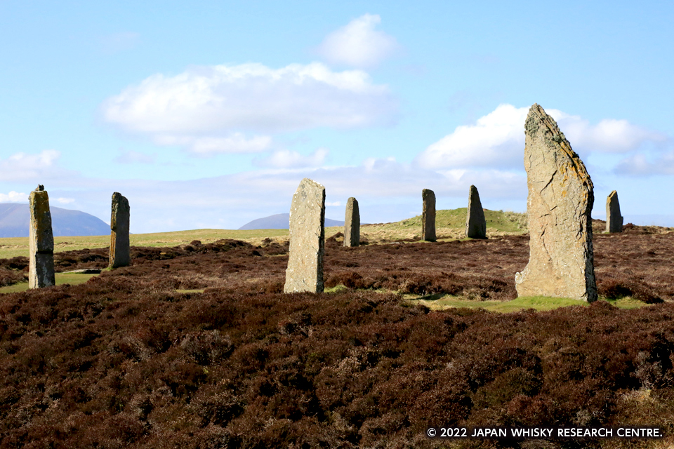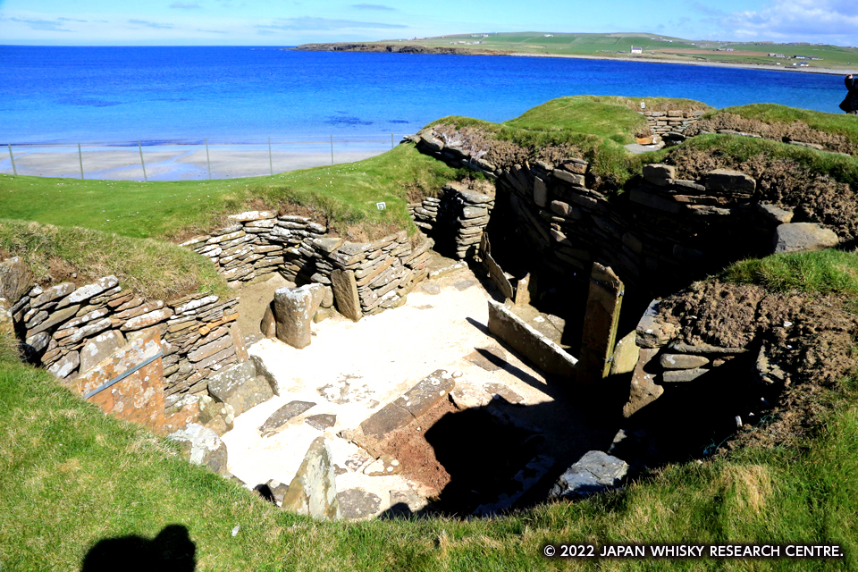 ステネスの立石とリング・オブ・ブロドガーは環状列石、いわゆるストーンサークルで、メイズハウは当時の古墳、そしてスカラブレイは今から5,200年ほど前の新石器時代の住居跡で、このてのものとしては最も保存状態が良いとされている。オークニーはヴァイキング文化で知られているが、ヴァイキングが北欧からやって来たのはAD8世紀頃で、その遥か以前から、この島には様々な人が住んでいたのだ。