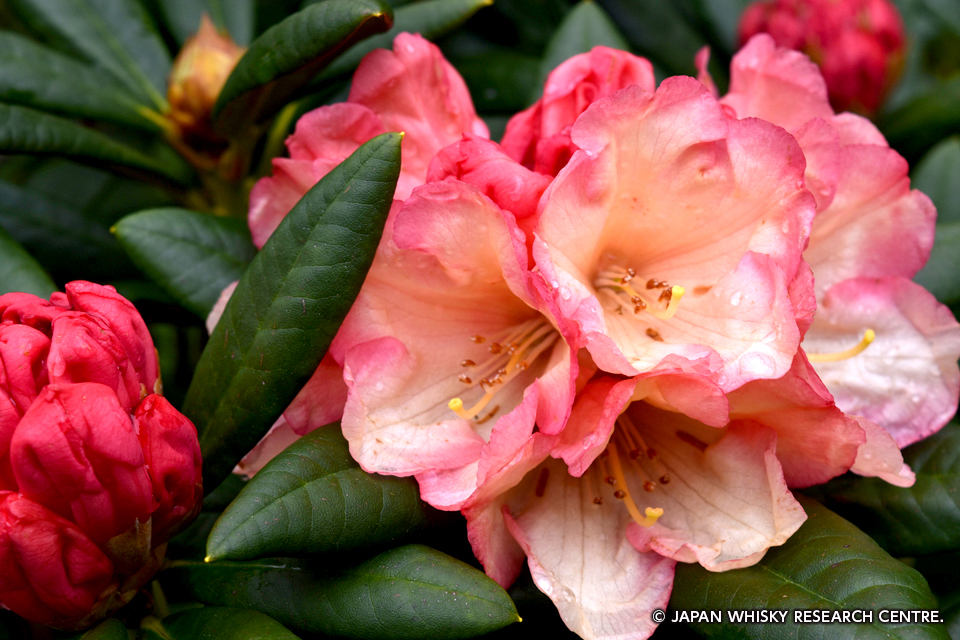 それに対してシャクナゲは中国・雲南省あたりが原産地。18世紀から19世紀にかけて、プラントハンターたちによって中国、東南アジアからもたらされた新参者だが、またたく間にイギリス全土に広がった。ともに酸性土壌を好むことから、とくにハイランドの痩せた酸性大地に、いつの間にか野生種としてはびこってしまった。かたや2,000年に対して、一方はまだ200年…。勢力分布はこれからどう変わってゆくのだろうか。