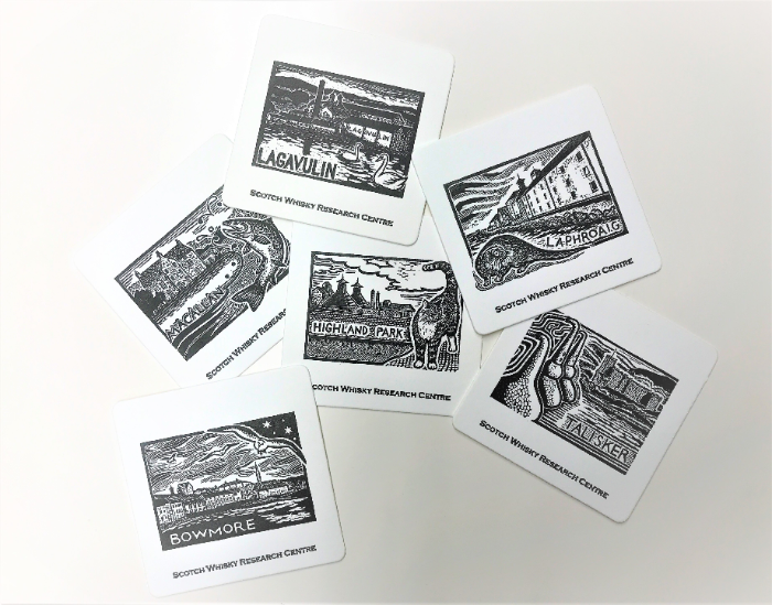 第2回セミナーにお申し込みいただいた方には、ウイスキー文化研究所特製コースター(スコッチ蒸留所6ヶ所の絵柄つき)6枚セットをプレゼントします。お申し込みはお早めに!